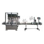 10头全自动辣椒酱灌装生产线主要由10头灌装机、直线式旋盖机、立式圆瓶贴标机、送瓶转盘组成。